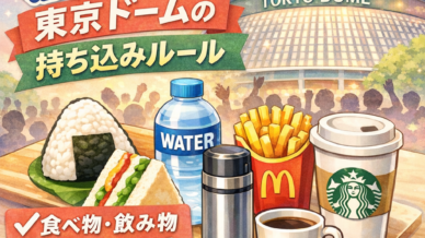 嵐のライブで東京ドームに行く予定の方の中には、食べ物や飲み物は持ち込みできる?おにぎりや軽食を持って行っても大丈夫?水筒やペットボトルはOK?スタバやマックは持ち込み禁止?など、持ち込みルールが気にな...