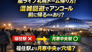 嵐の札幌ドームライブに参加する人の中には、「帰りはどれくらい混雑するの?」「アンコール前に帰った方がいい?」と気になっている方も多いのではないでしょうか。特に地下鉄福住駅へ向かう人が一気に集中するため...