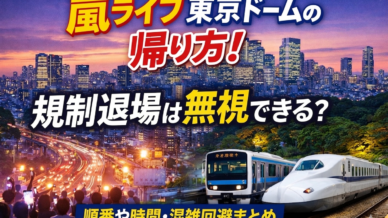 嵐の東京ドームライブに参戦する人の中には、「帰りってどれくらい混雑するの?」「規制退場って無視していいの?」と気になっている方も多いのではないでしょうか。特に東京ドーム公演は動員数が多く、終演後は駅や...