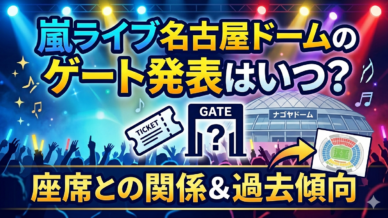 エンタメ 嵐ライブ名古屋ドームのゲート発表はいつ?座席との関係&過去傾向 嵐の名古屋ドームライブが近づくと気になるのが、「ゲート発表はいつ?」という点ですよね。「まだ発表されないけど大丈夫?」「座席と関係あるの?」と、不安に感じている方も多いのではないでしょうか。特に最近は... 2026.04.03 エンタメ推し活術