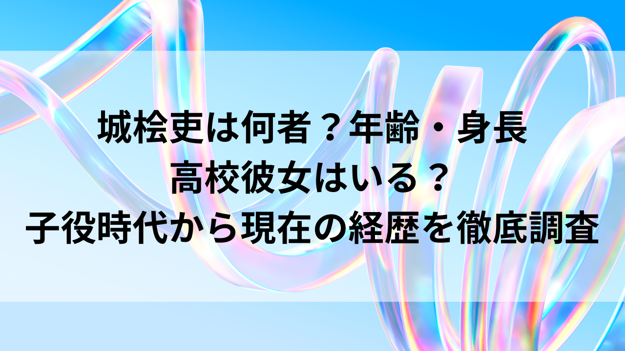 城 桧吏(じょう かいり)さんは何者なのでしょうか?