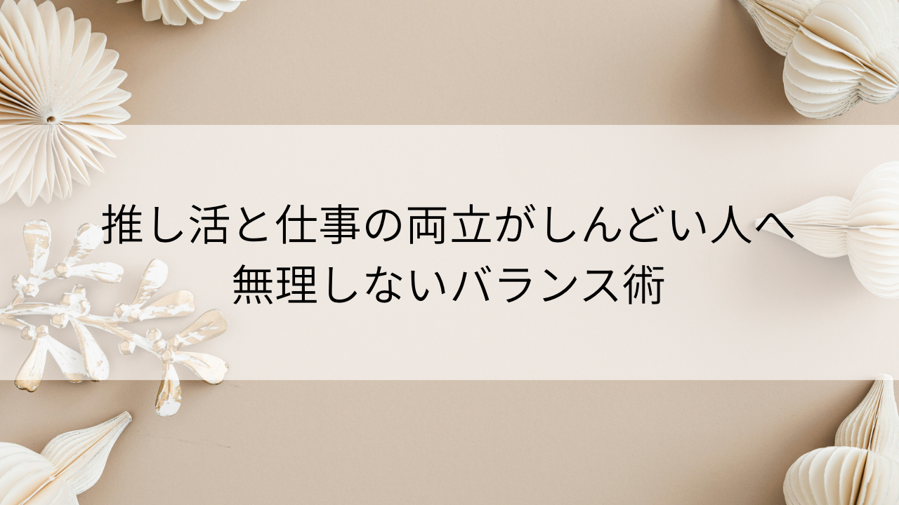 この記事では、推し活と仕事の両立がしんどくなる理由と、無理をしないバランスの取り方をわかりやすく解説します。
