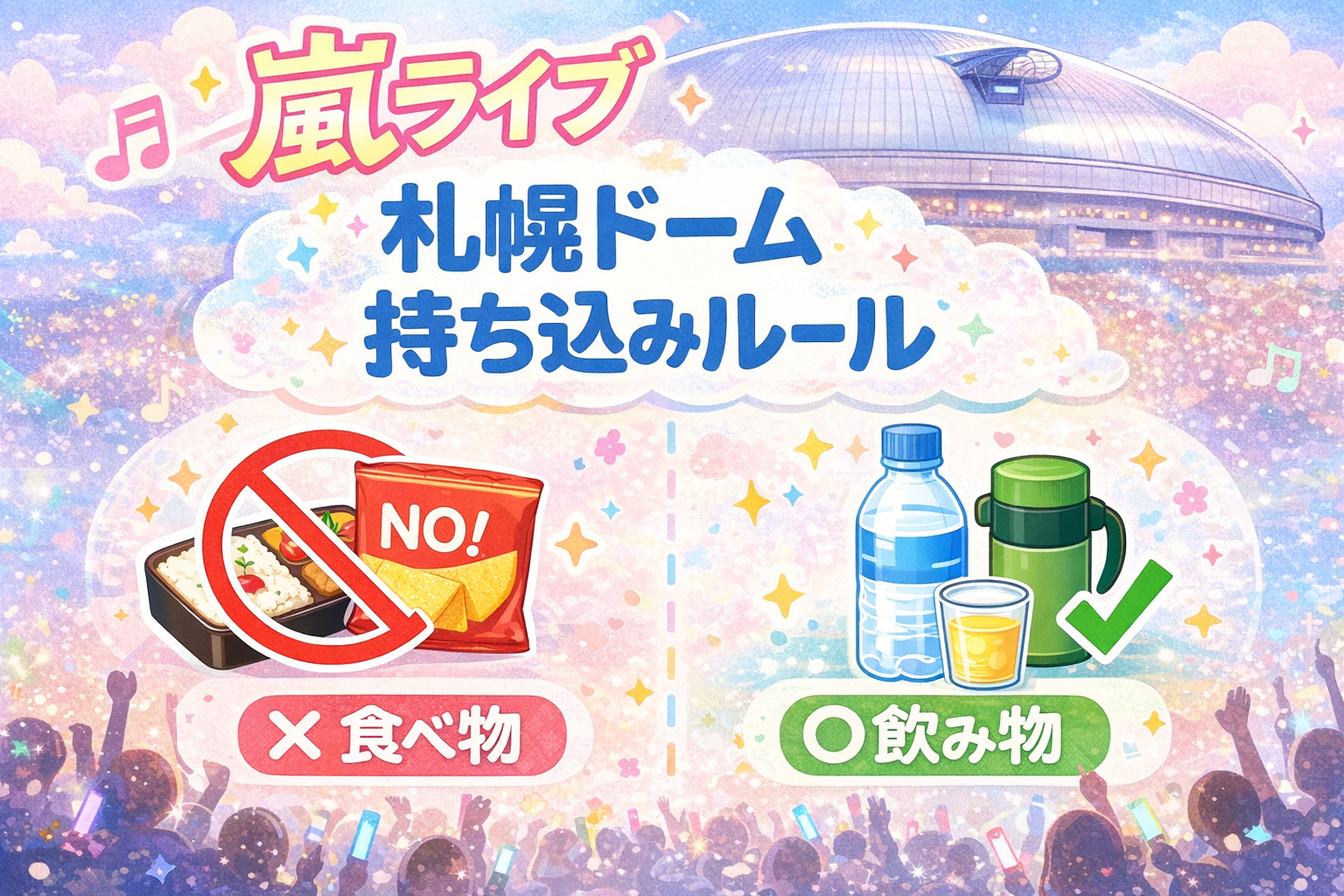 この記事では、嵐ライブで札幌ドーム(大和ハウス プレミストドーム)へ行く際の食べ物の持ち込みルールや持ち込み禁止の物、注意点についてわかりやすく解説します。