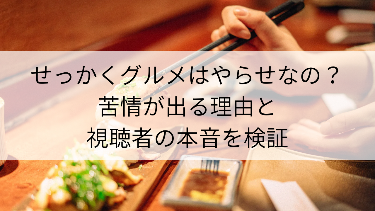 『せっかくグルメ』については、「やらせでは?」「苦情が多い」といった声が見られる一方で、それらの多くは番組の演出や視聴者の受け取り方の違いから生まれていることが分かります。