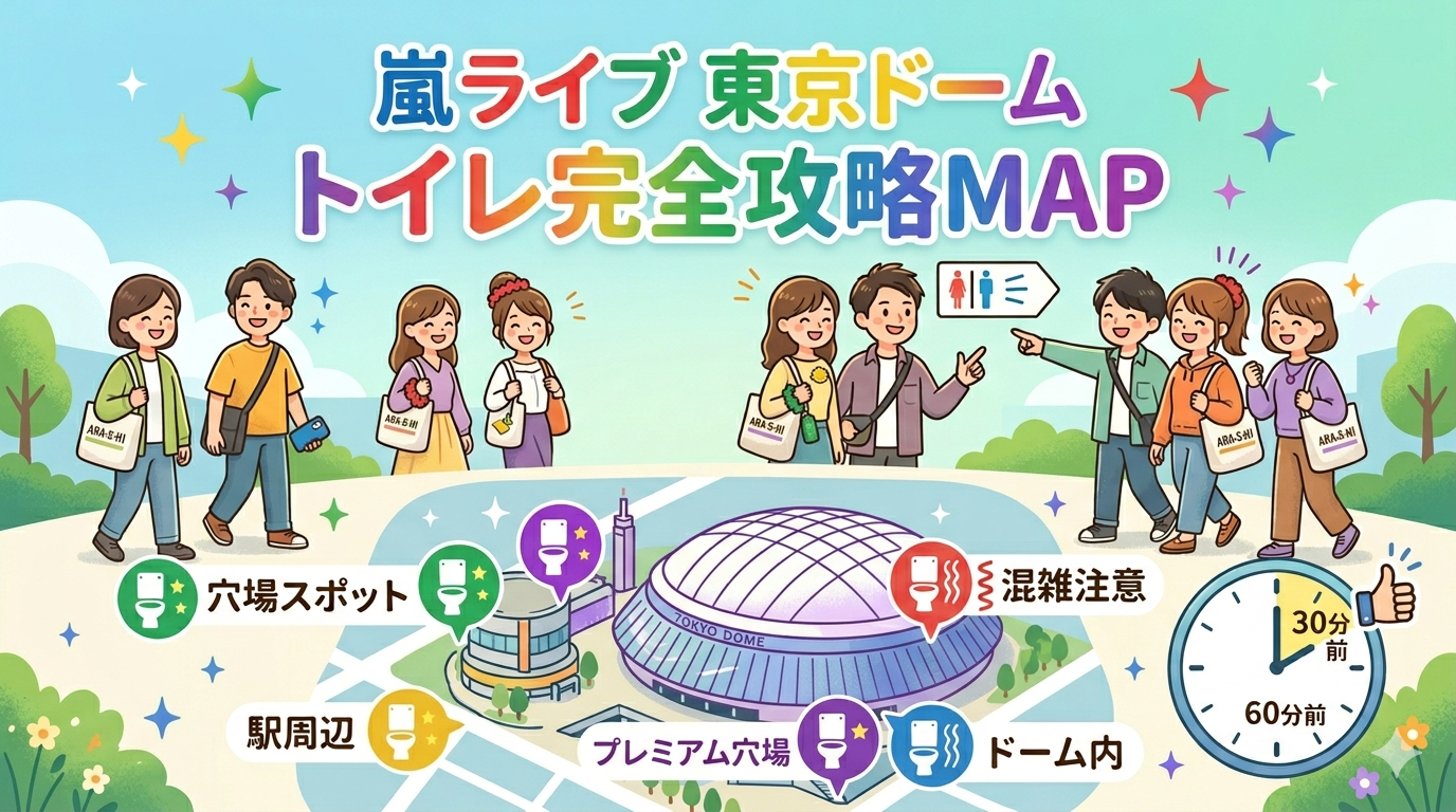 東京ドームでの嵐ライブは、時間のズラし方と場所選びでトイレの快適さが大きく変わります。
