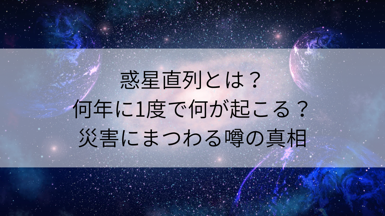 惑星直列(惑星パレード)という言葉を聞くと、「何年に1度起こるの?」「何か特別なことが起こるの?」「災害と関係があるって本当なの?」と、少し不安や好奇心を感じる方も多いのではないでしょうか。
